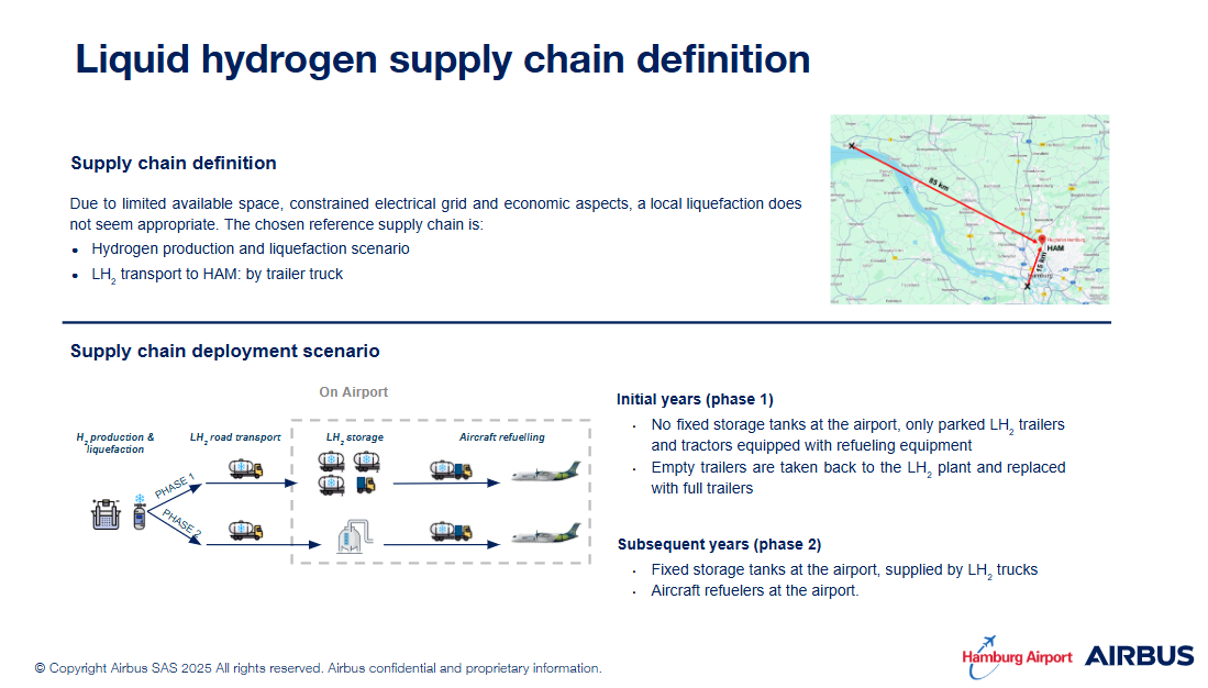 Es ist zu beachten, dass diese Referenz-Supply-Chain nur für den Hamburg Airport gilt, bei anderen Gegebenheiten kann beispielsweise auch eine lokale Verflüssigung Sinn ergeben.