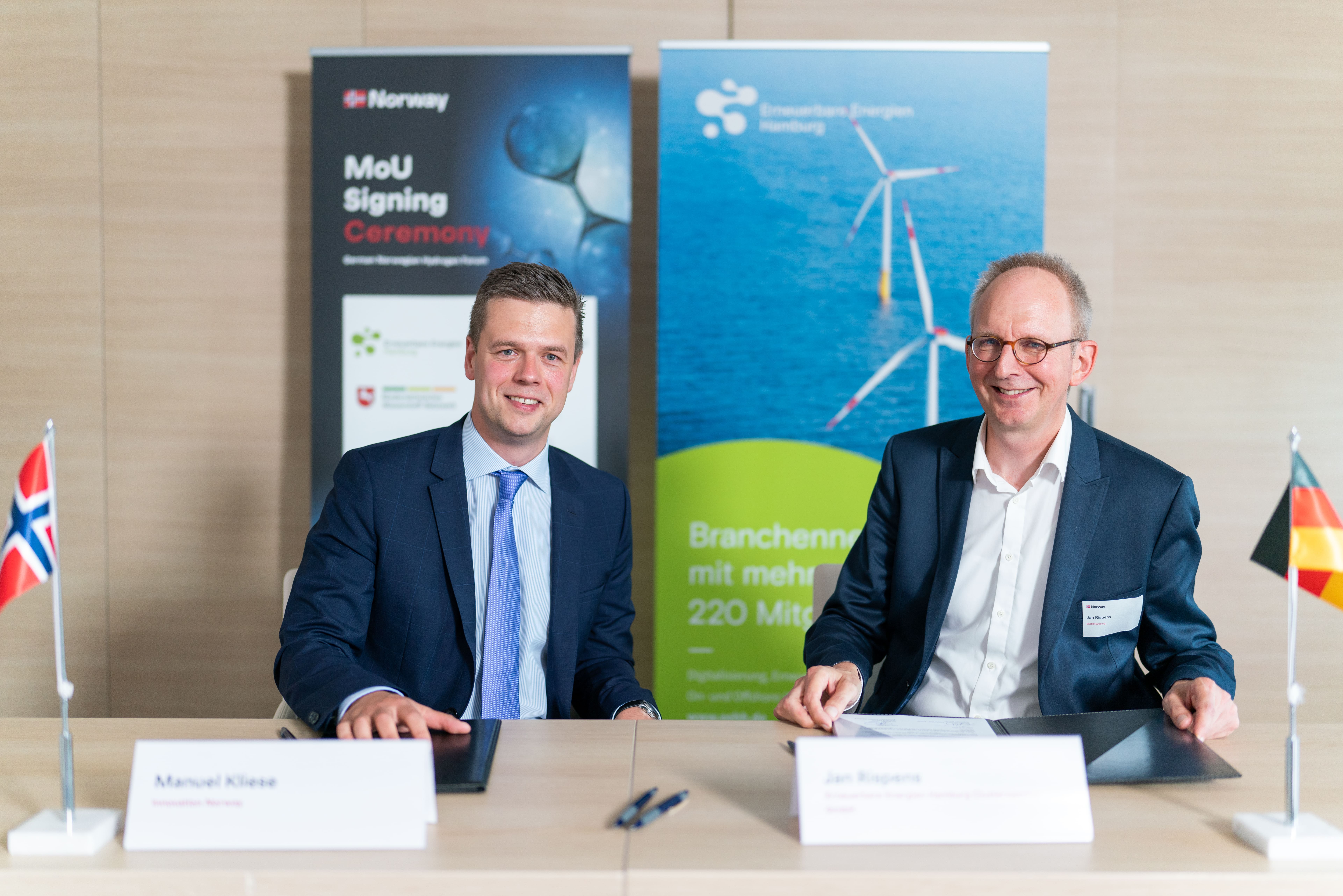 At the first German-Norwegian Hydrogen Forum, EEHH and Innovation Norway signed a memorandum of understanding (MoU). The aim is to intensify cooperation on jointly relevant and interesting topics, as well as for the production, use and distribution of green hydrogen. The MoU is part of the major climate protection and energy transition cooperation agreement between Norway, Hamburg and four other northern German states.